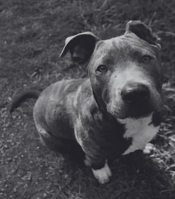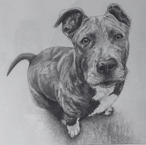 Meet Paisley | A beautiful, energetic Staffy who had an ear injury as a pup. Illustrated using graphite to fit frame size landscape 40cm x 30cm