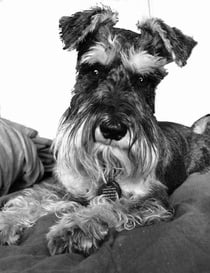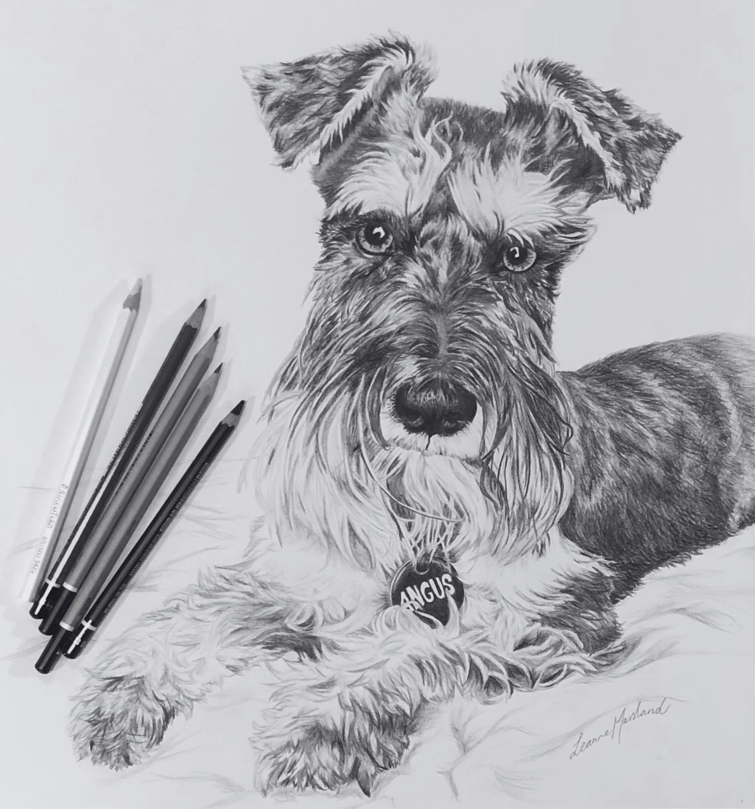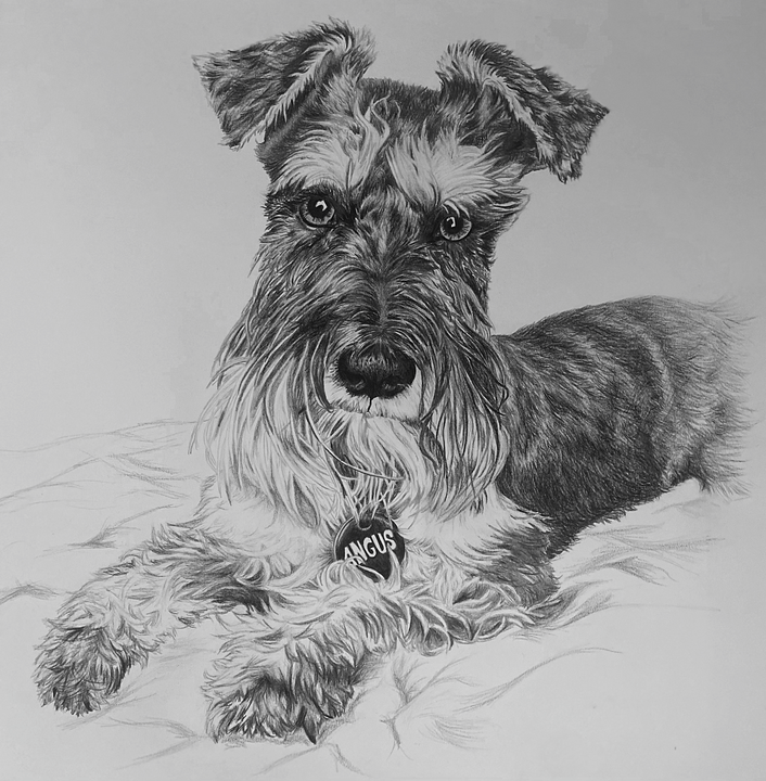 Meet Angus | A very smart, cheeky & fun loving Mini Schnauzer. Illustrated using graphite to fit frame size square 40cm x 40cm.